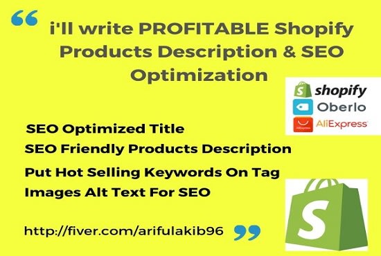 "I will add Products to your Shopify store with SEO Title, profitable description.I will add the images perfectly. There won't be an issue with miss information, And as you know a proper listing of product drive good number of sale"